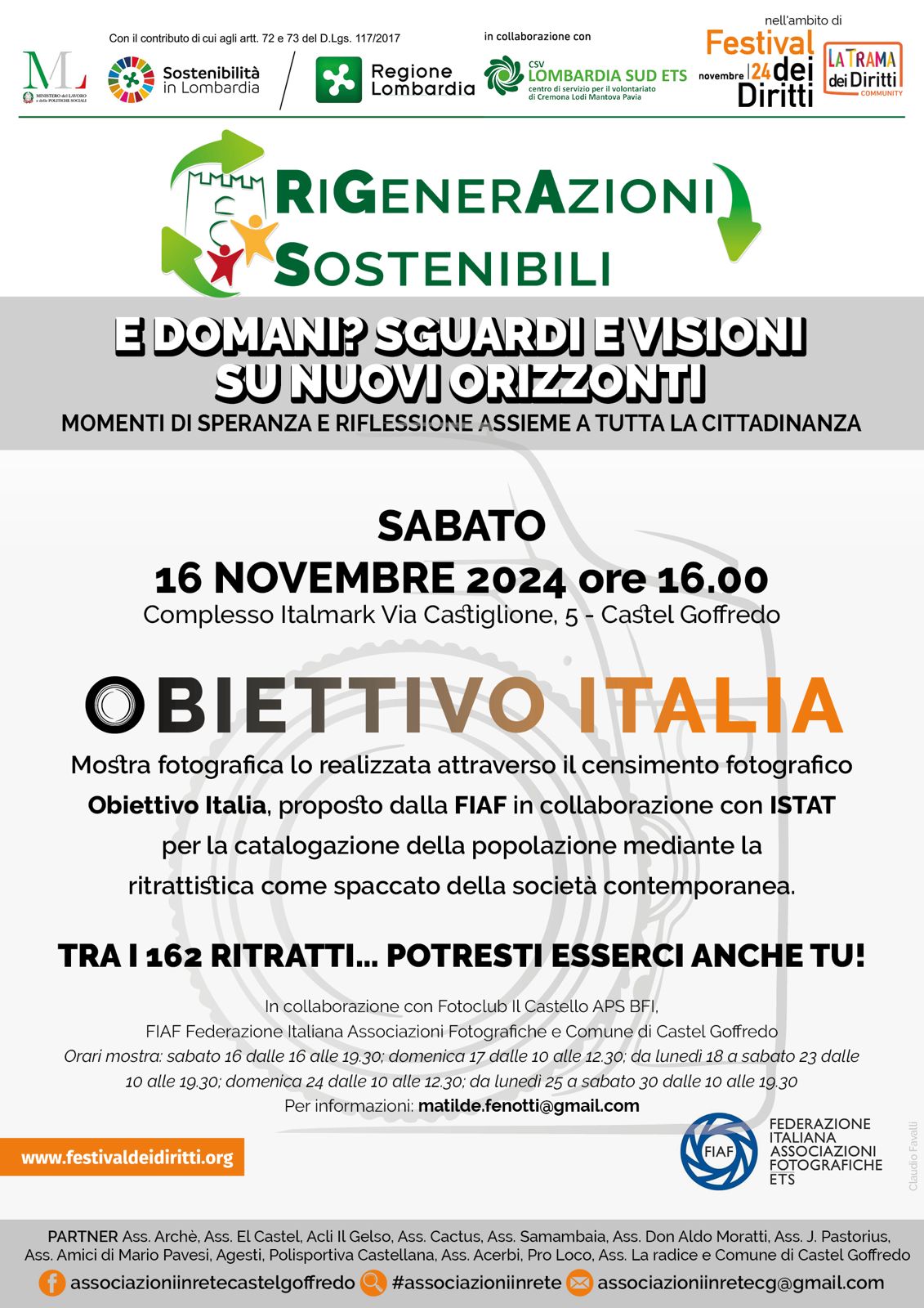 27 Gennaio - GIORNO DELLA MEMORIA 2022: EVENTI PER LE SCUOLE in diretta su RAI 1 _________________________________ il Progetto Continua ______________________________________________ A.Ge.St.I. fa parte della Commissione Commissione Pari Opportunità Comune di Castel Goffredo Si avvicina la giornata contro la violenza sulle donne. Quest'anno proponiamo, gratuitamente, la visione di un breve ma intenso filmato Al termine, come sempre, la consegna di un omaggio floreale alle donne in sala Potremo anche visitare la mostra fotografica proposta da Foto Club il Castello, dedicata proprio alla tematica del giorno. Il ritrovo è giovedì 25 novembre alle 20.20 presso la panchina rossa (p.le sferisterio) per raggiungere la sala consiliare seguendo un percorso speciale. Tiziana Rodella _______________________ La nostra proposta per il Bando "Più Cultura = Meno Violenza" _____________________________ Bando Più Cultura = Meno Violenza Una Carezza al cuore Le donne raccontano Cecilia video _________________ 25 marzo Dantedì ________________ contro la violenza sulle donne ___________________________