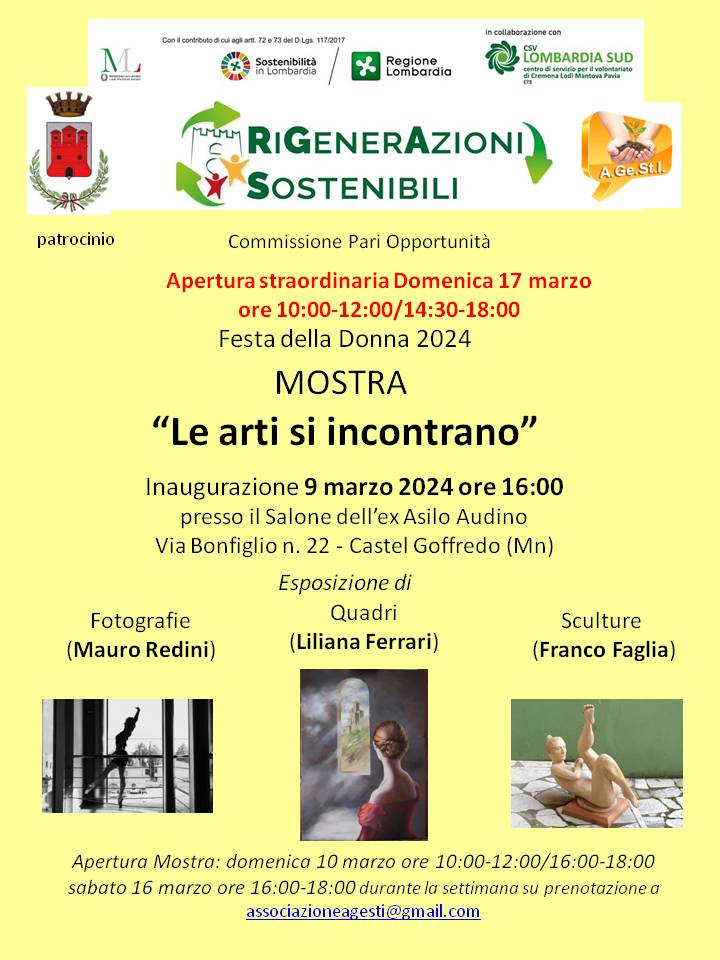 "IMPRONTA DI DONNA" Il Comune di Castel Goffredo dedica la Festa della Donna L'inaugurazione si terrà martedì 8 marzo, alle ore 18:00 L'accesso sarà consentito con mascherina e Green Pass Guarda l'Inspiration Book dedicato ad Arianna. https://indd.adobe.com/view/213c07d1-6950-42ad-abfc-ec77f62982e6