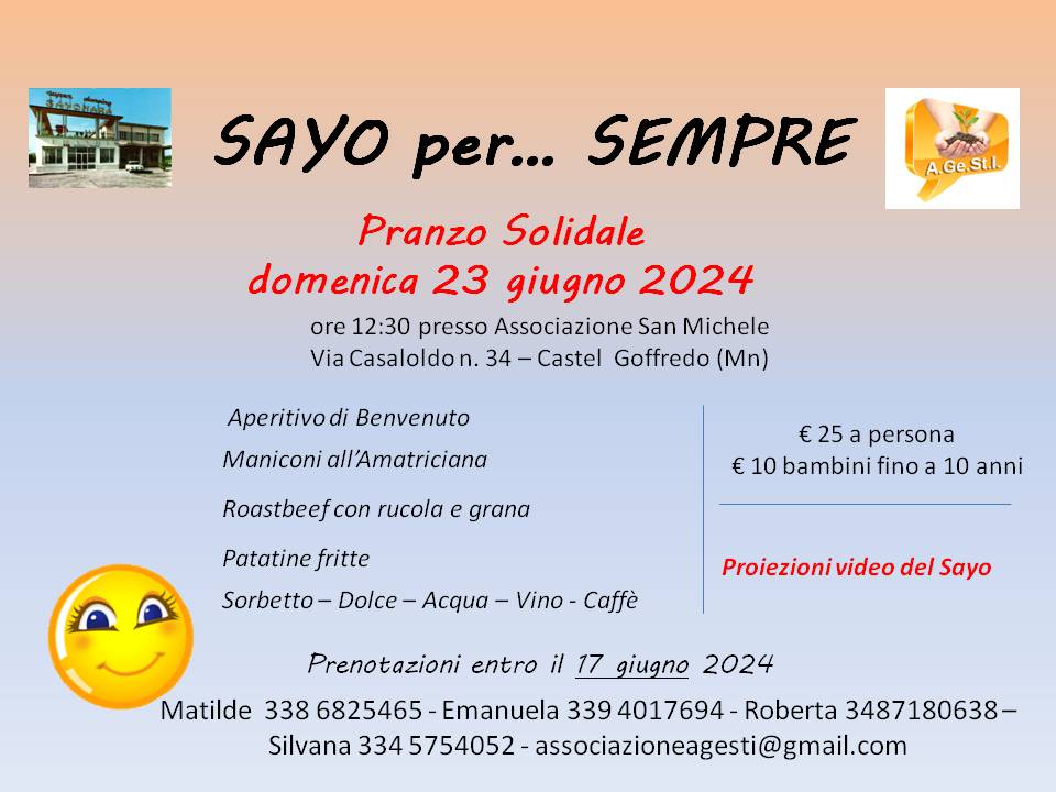 ---------------------------------- PRANZO SOLIDALE RINVIATO Le prenotazioni sono prorogate a Martedì 27 giugno